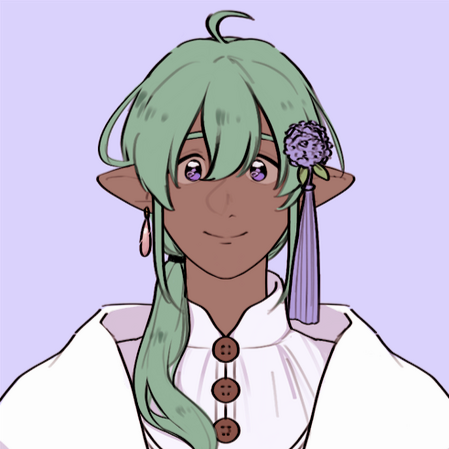 a lanky young man with a calming air about him whose height is the only thing that could possibly be intimidating — not that florin usually stands at his full height to begin with. he keeps his green hair long and usually tied back in a ponytail or braid.florin emotes normally, but is more restrained than energetic as a result of trying to keep up with/wrangle in his brave big sister. he typically has a smile on his face but looks of concern are common as well.prefers light and flowy clothes. favorite colors are purple, green, yellow, and white.